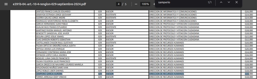 Los sobornos ofrecidos por la asignación de ese contrato a la empresa de Aurora Samperio García son del 25%, se conoce que altos funcionarios del gobierno de Bernardo Arévalo están vinculados con la recepción de los sobornos que se pagan por esta contratación; los dictámenes para aprobar la implementación de dicha tecnología los firmó el director informático del Ministerio de Relaciones Exteriores quien no posee los grados académicos en relación a ese tipo de tecnología, según se pudo corroborar, dicho funcionario es bachiller.